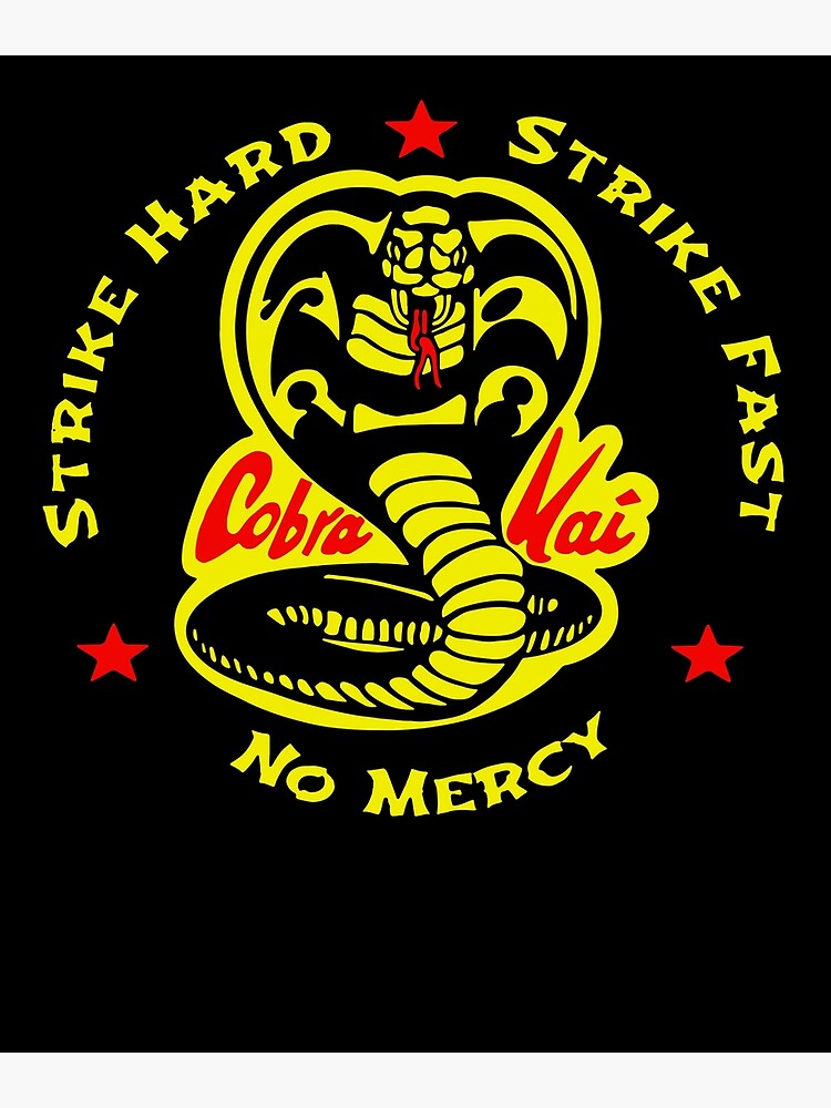 Cobra Kai is "the way of the fist," and the dojo Kreese and Silver founded has three simple rules: "Strike first, strike hard, no mercy." For a Cobra Kai, these rules apply in competition, in combat, and in life Recently, my wife and I binge-watched Season 3 of Cobra Kai „Strike first, strike hard, no mercy" is the Cobra Kai motto from the TV series, Cobra Kai, a continuation of the Karate Kid franchise